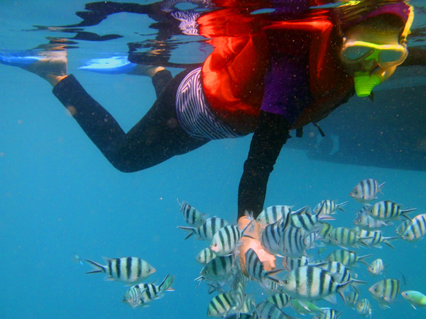 Di sisi lain dari pulau ini juga terdapat spot untuk bersnokling. Sampai menjelang makan siang kamipun masih bertahan di pulau ini untuk menikmati ikan bakar. Selesai makan siang kapal yang kami tumpangi bergerak menjauh lebih ke utara menuju laut yang lebih dalam untuk menikmati biota laut yang lebih indah.