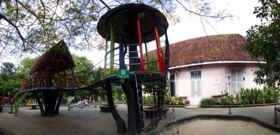 Berjalan beberapa ratus meter lagi dari taman budaya ada satu bangunan moderen dengan warna yang cukup meriah. Bangunan yang yang di dominasi oleh warna warna primer ini adalah Taman Pintar. Saya sempat menebak bahwa ini adalah bangunan perpustakaan daerah Jogjakrta. Tapi setelah saya masuk dan berkeliling akhirnya saya tahu. Taman pintar adalah salah satu wahana hiburan dan pendidikan yang ditujukan bagi anak-anak. Konsepnya lebih ke museum IPTEK yang ada di Taman Mini Indonesia Indah. Taman yang terdiri dari beberapa spot indoor dan outdoor berkonsep belajar sambil bermain terdiri atas beberapa bangunan diantaranya : Gedung Paud (utara dan Selatan), Gedung Memorabilia, Gedung Kotak dan Gedung Memoribilia.