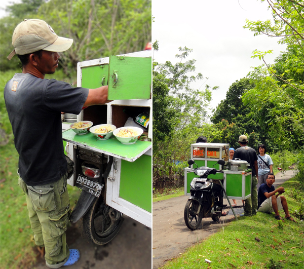 Meskipun selama  perjalanan menuju kota Benteng banyak pemandangan indah seperti rumah tradsional dan pemandangan alam. Tapi semua itu tidak bisa membuat kami kenyang dan merasa lebih bahagia dibandingkan sepiring nasi. Akhirnya Tuhan mendengar doa kami. Setelah berjalan kira kira satu jam. Tampak sebuah gerobak bakso melintas di jalanan sepi. Tanpa basa basi kamipun langsung menyerbu bakso “Made in Selayar” yang rasanya sangat berbeda dibandingkan bakso di pulau Jawa atau Sumatra.