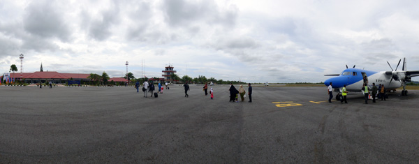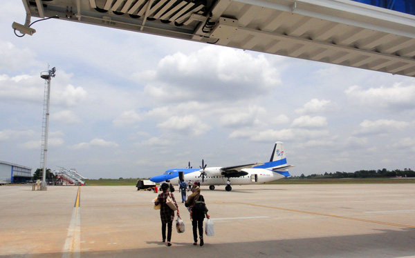 Tiga jam kemudian sayapun melanjutkan penerbangan ke Tanjung Pandan dengan pesawat Fokker 50 milik maskapai Sky Aviation. Maskapai yang memiliki slogan “To Fly in Every Sky” menjadwalkan penerbangan Palembang ke Tanjung Pandan setiap harinya. Dengan tiket seharga Rp 600.000,- memberikan pilihan kepada penumpang yang tidak ingin berlama-lama ke Belitung dengan melewati dua kali penyebrangan laut.