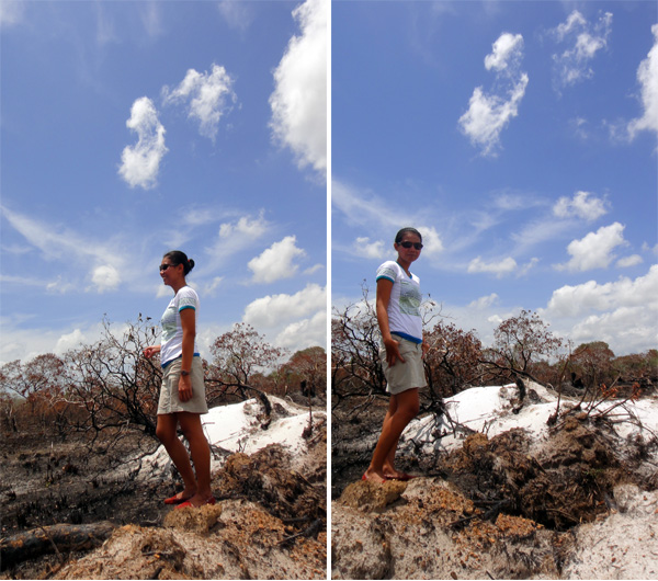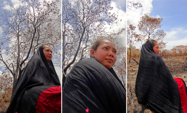 Sebetulnya dalam perjalanan hari terakhir di Belitung kali ini kami tidak merencanakan sesi pemotretan. Karena tidak menjadwalkan ke tujuan wisata alam. Kali ini kami fokus ke wisata budaya seperti Kelenteng Dewi Kwan Im dan replika SD Muhamadiyah Gantong. Tapi ketika melakukan perjalanan dari Manggar menuju Gantong, kami melewati sebuah hutan terbakar dengan beberapa pohon tampak meranggas. Kontan “model-model” dadakan sayapun meminta untuk menghentikan mobil. Dengan wardrobe seadanya mengkonsep satu pemotretan yang bertema gothic dan misterius. Walhasil kerudung salah satu rekan sayapun menjadi korban.