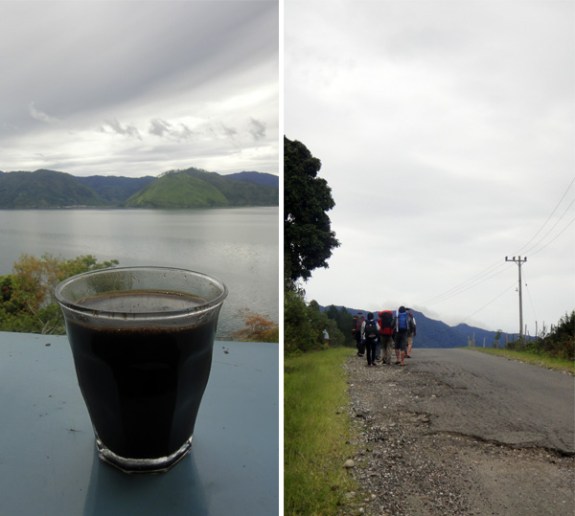 Setelah melewati perjalanan akhirnya sampai juga di lokasi. Kamipun berhenti sejenak di sebuah kedai kopi yang bangunanya menjorok ke danau. Hmm nikamtanya menikmati segelas kopi Gayo dipinggir danau. Angin sepoi-sepoi membuat kami enggan untuk bangkit. Tapi cuaca tidak bersahabat, tenda harus cepat dibangun sebelum hujan turun.
