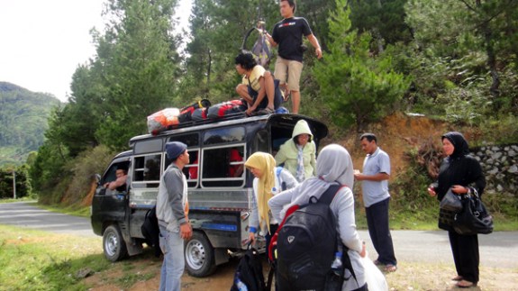 Sesampai di pasar inpres hanya ada satu labi labi menuju Ujung Nunang untuk hari ini. Para penumpang juga sudah menunggu sejak pagi. Mau tidak mau beberapa dari kami harus naik di atap labi labi agar sampai  tujuan. Benar benar perjalanan “uji nyali”.