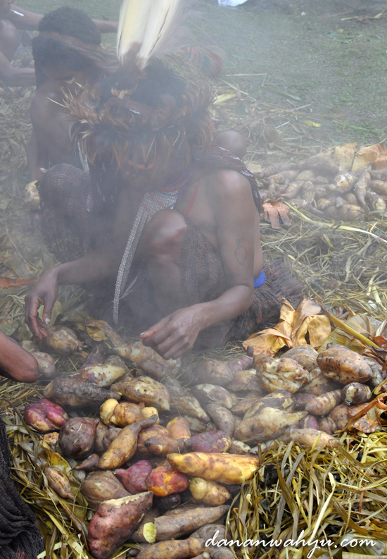 Ubi menjadi menu wajib dalam upacara bakar batu