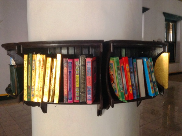 rak Al Quran melingkari pilar masjid
