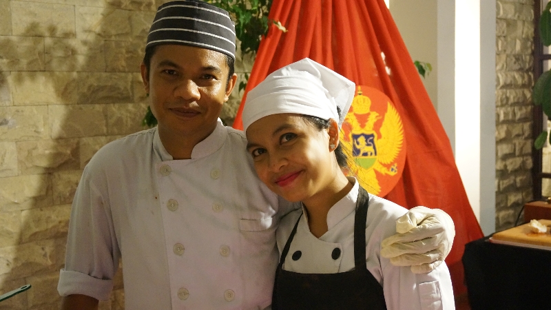Makan malamnya  bisa berdua bareng pasangan mesra – seperti kakak koki ini – atau berdua jomblo bareng sahabat, seperti dua om-om di bawah ini.