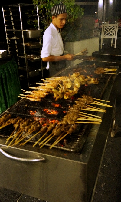 “Kalau daging kambing sebelum dibakar direndam dulu dengan bumbu dan mayonise”, ujar koki membocorkan rahasia.