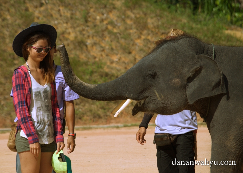Jangan takut ya, gajah bukanlah hewan buas. Semua gajah yang ada di sini sudah terlatih dan biasa dengan kehadiran manusia. Namun ketika memberi makanan kepada sang gajah harus percaya diri. Jangan makanan sudah mau masuk ke dalam mulut, terus kamu tarik lagi karena ketakutan. Wah bisa marah gajahnya karena di PHP.