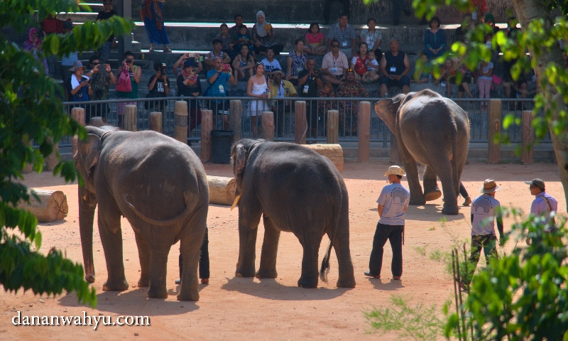 Eh tapi jangan lupa sebentar lagi saatnya para gajah mandi sore. Mau ikutan mandi? Bersiap-siaplah mendapat semprotan dasyat belalai.