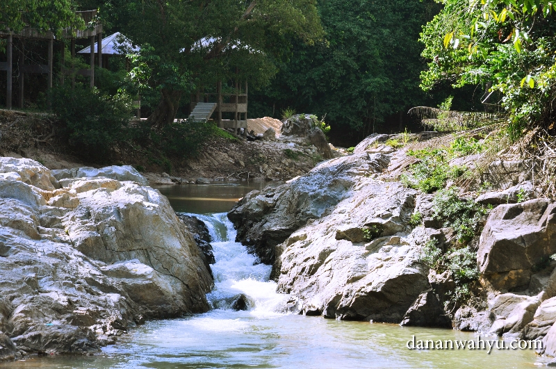 Pemandangan sungai yang membelah KEV sangat indah dengan batu besar, mengingatkan akan nuansa pedesaan. Ah nikmatnya duduk santai di pondok dekat sungai.