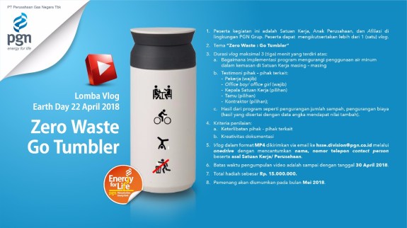 Zero Waste Go Tumbler – Memperingati hari bumi 22 April 2018 induk perusahaan membuat lomba vlog. Nggak tahu beberapa bulan terakhir rajin banget bikin lomba vlog. Bulan April 2018 ada dua lomba vlog yang hadiahnya lumayan menggiurkan. Tapi sayang ketika lomba vlog ” Menebar Energi Baik” berlangsung saya nggak bia ikutan karena sedang piknik.