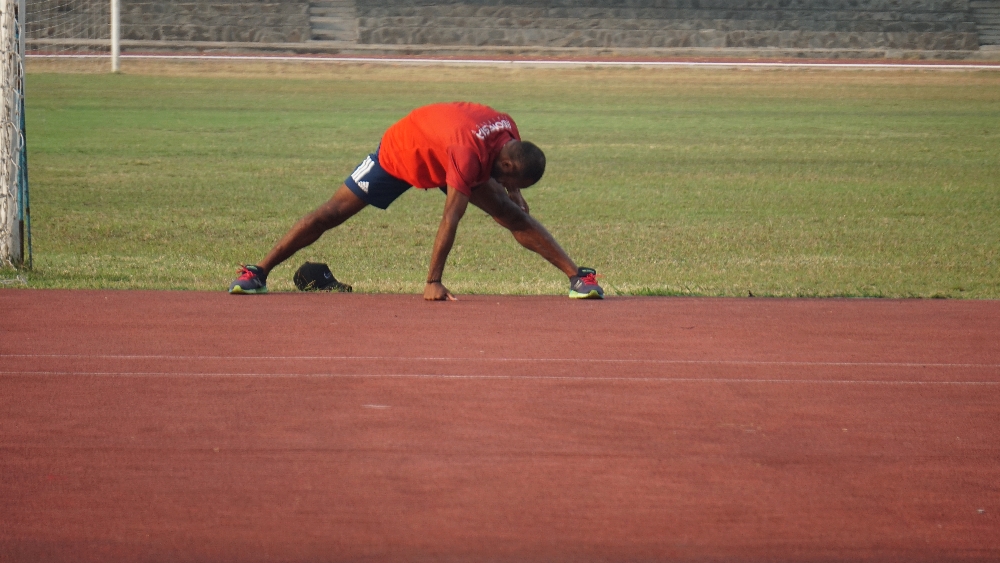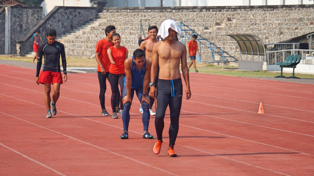 Beberapa atlet terlihat melakukan persiapan dengan peregangan dan pemanasan.  Berlari mengelilingi lapangan menjadi menu latihan pembuka, sebelum mereka fokus ke cabang olahraga masing-masing.