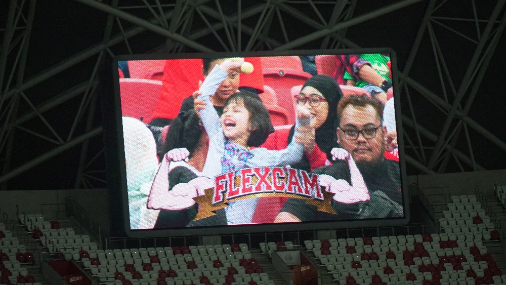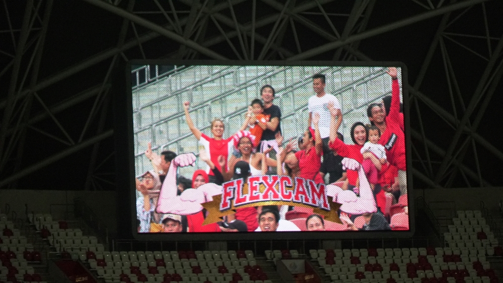 “Mak, Aku masuk tipi” wah betapa bangganya Emak di rumah lihat anaknya eksis di Singapura National Stadium.