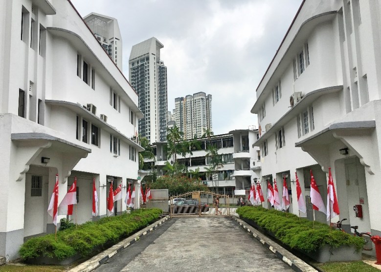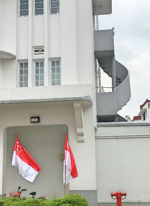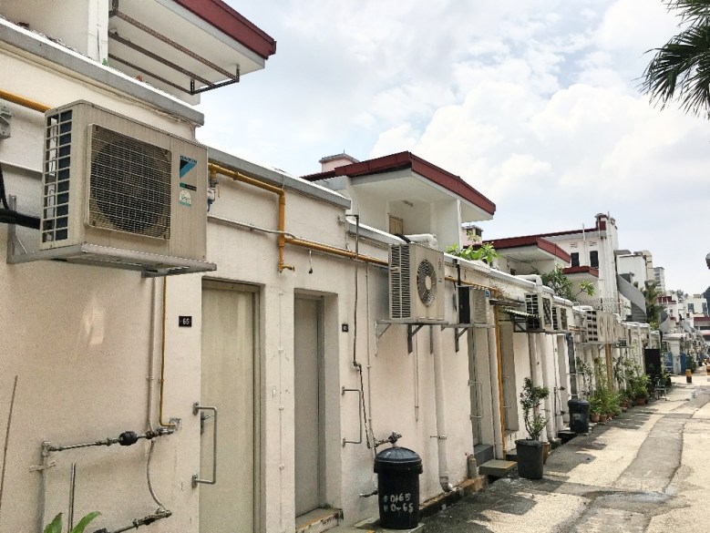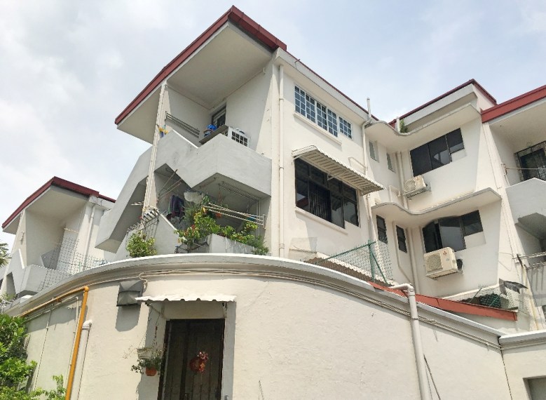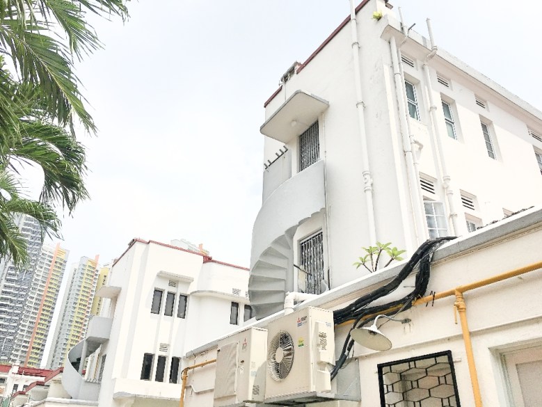 Arsitektur rumah di sini merupakan campuran dari gaya rumah toko Streamline Moderne dan Straits Settlements lokal. Flat dengan balkon bulat, atap datar, tangga spiral, sumur penyimpan air bawah tanah dan tempat penampungan.