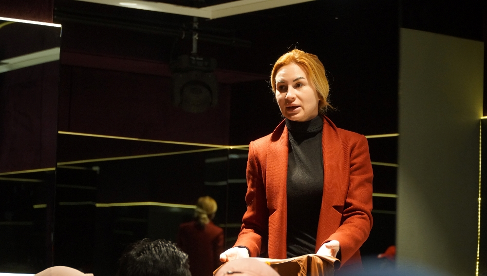 Ketika semua hadirin sudah duduk manis, sang MC cantik berambut pirang memperkenalkan diri dengan gaya elegan. Dengan piawainya ia memperkenalkan Best Leather & Fur sebagai brand kulit domba terbaik di Istanbul bahkan seTurki.