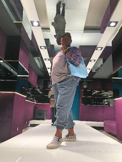 Ruangannya berdinding kaca dengan catwalk panjang melingkar mengelilingi ruangan . Beberapa sofa berwarna merah senada dengan wallpaper adalah singgasana para “raja” yang nantinya didaulat untuk memborong.