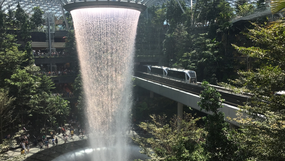 Akhir pekan lalu saya jalan-jalan ke Jewel, itu lho gerojokan yang konon air terjun buatan tertinggi di dunia. Desain atapnya berbentuk vortex menaungi bangunan seluas ribuan meter persegi . Ini belum apa-apa, karena ternyata Jewel ini merupakan hutan buatan dengan koleksi 2000 jenis tanaman dari seluruh di dunia.