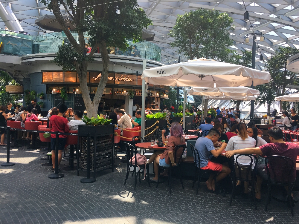 Setelah lelah naik turun menikmati Jewel perut-perut yang lapar dimanjakan dengan beragam pilihan resto dan kafe. Tak tanggung-tanggung, resto berkelas dunia seperti Shake Shack (gerai makanan cepat saji pertama Amerika yang berasal dari New York), Burger and Lobster (asal London), Laderach (cokelat asal Swiss), dan Pink Fish (restoran seafood cepat saji pertama di dunia) hadir di sini. Dan kini seolah Jewel menjadi referensi baru bagi foodies di Asia Tenggara bahkan Asia.