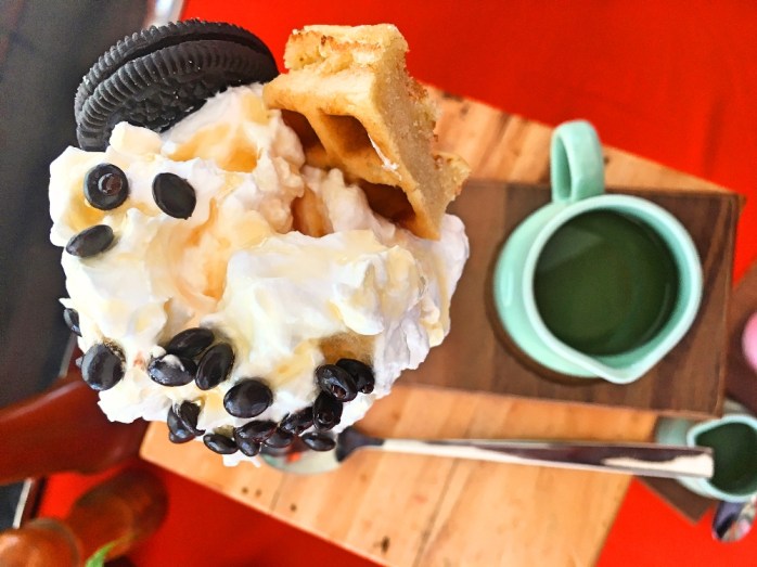 Aku sih paling suka dengan Unicorn Milkshake, warna baby bluenya itu lucu banget, beda dengan milkshake pada umumnya dan paling yummy dilengkapi dengan topping choco chips warna-warni.