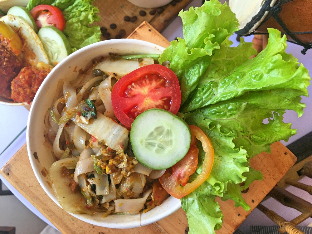 Dalam mangkuk kertas bertutup makanan-makanan ini jelas mudah dibawa dan dapat diselipkan di ransel atau tas jinjing.