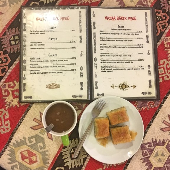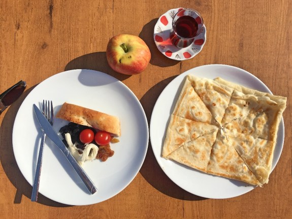 Untuk harga 300 ribu rupiah, sarapan selengkap ini rasanya nggak rugi. Tapi memang sih, sarapan ala Turki itu memang meriah dan sehat. Bayangkan aneka ragam biji-bijian dan buah-buahan yang kalau di Indonesia jadi menu diet, di sini jadi makanan sehari-hari. Walaupun aslinya aku merindukan nasi uduk dan lontong sayur dengan kiah kimplek-kimplek kaya santen dan bumbu rempah.