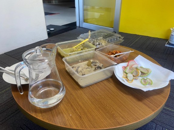 Hari terakhir puasa saya mencoba mempersiapkan diri seperti lebaran di rumah. Walau tidak selengkap di rumah, menu lebaran dihadirkan di meja makan, lengkap bersama kue-kuenya. Sehingga saat berbuka terakhir bisa menikmati ketupat opor seperti di rumah. Saya buka layar ponsel lebar-lebar, walau dari jauh saya tetap bisa berbuka puasa dan mengobrol dengan keluarga di Lampung.