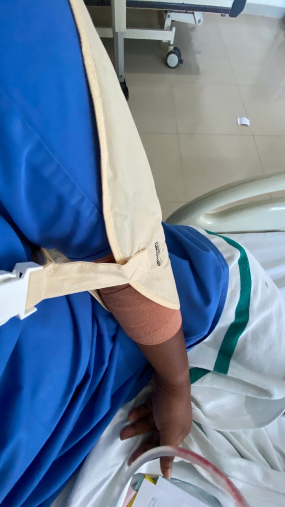 Beruntung saya punya badan yang lentur (efek yoga sebulan), jadi aktivitas MCK tetap bisa dilakukan walau badan harus meliuk-liuk seperti ulat keket. Tapi sedihnya jari tangan kiri saya tidak nyaman untuk digerakan. Sebelum operasi dokter berkata tentang kemungkinan jempol tidak bisa digerakan karena syarafnya dekat dengan tulang lengan atas terganggu. Namun dokter tetap menyemangati saya untuk melatih lengan dan jari tangan kiri.