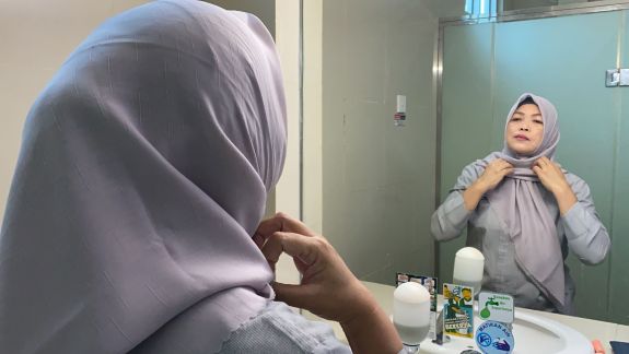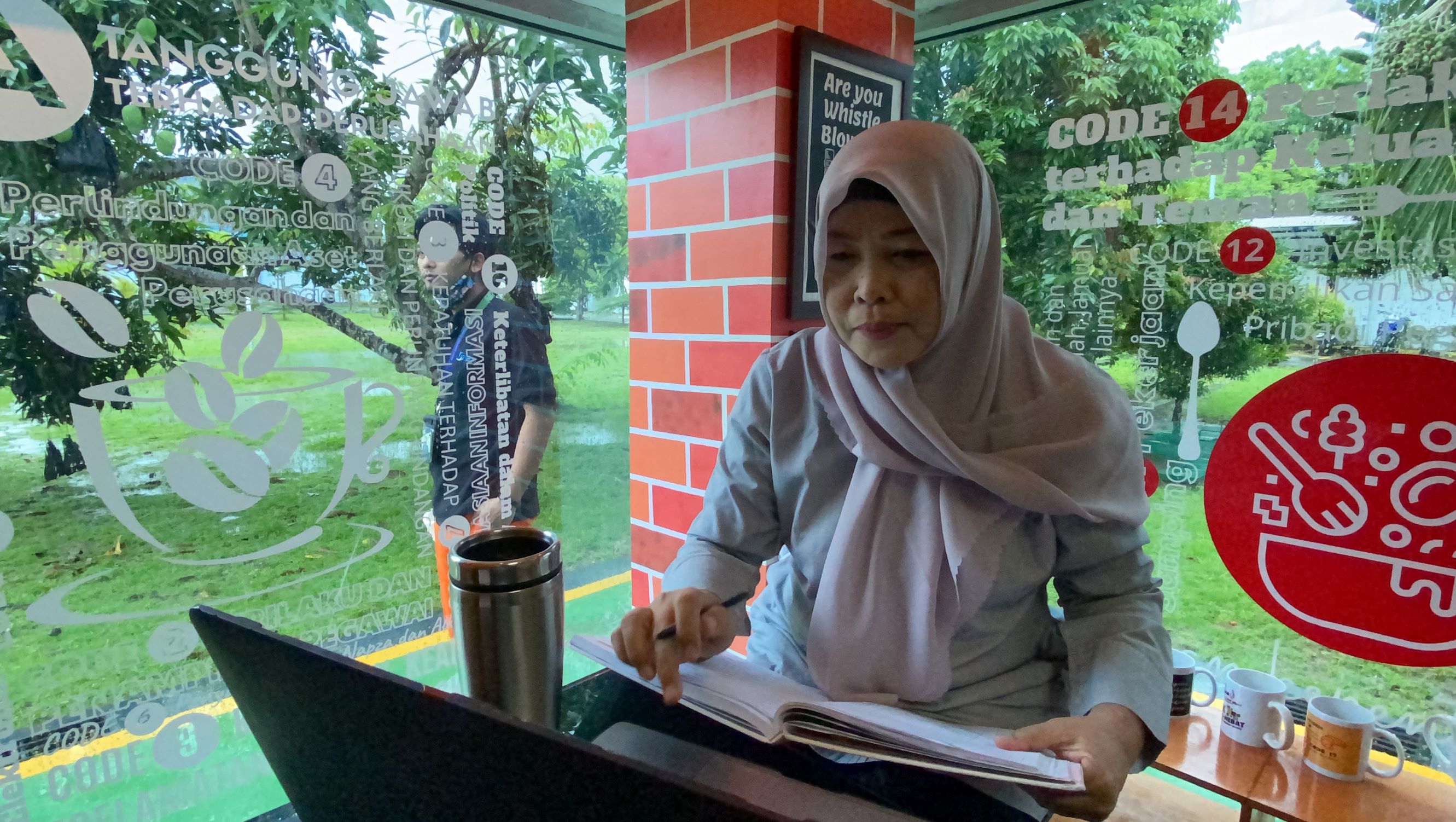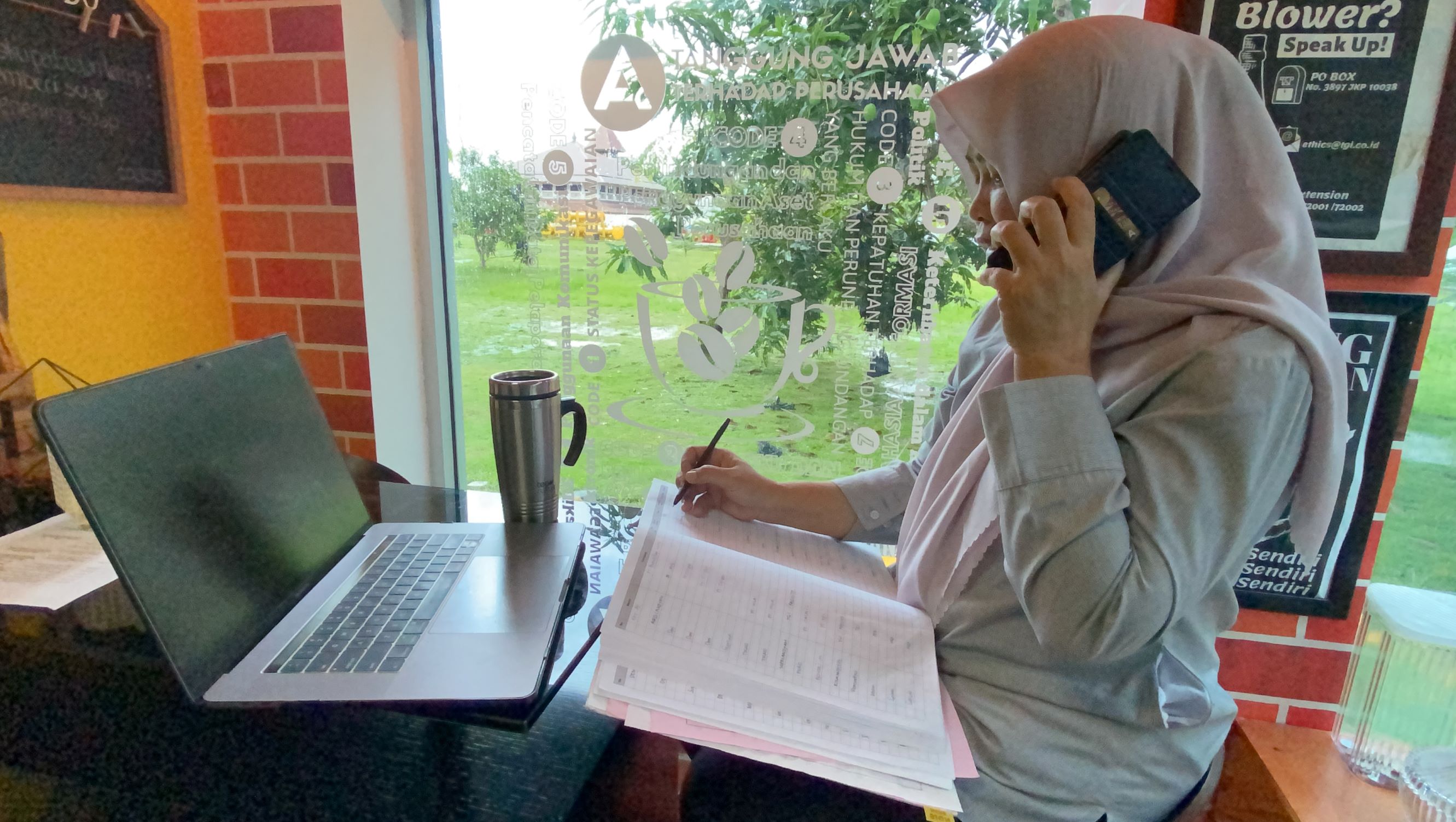 Kebetulan Ibu Kusmiyati, sang talent kami masuk kerja setelah jam makan siang. Jadi pengambilan gambar dilakukan sebelum beliau bekerja. Setelah briefing beberapa menit akhirnya kami melakukan pengambilan gambar di ethics kafe dan kamar mandi kantor. Lamanya kurang lebih 1 jam.