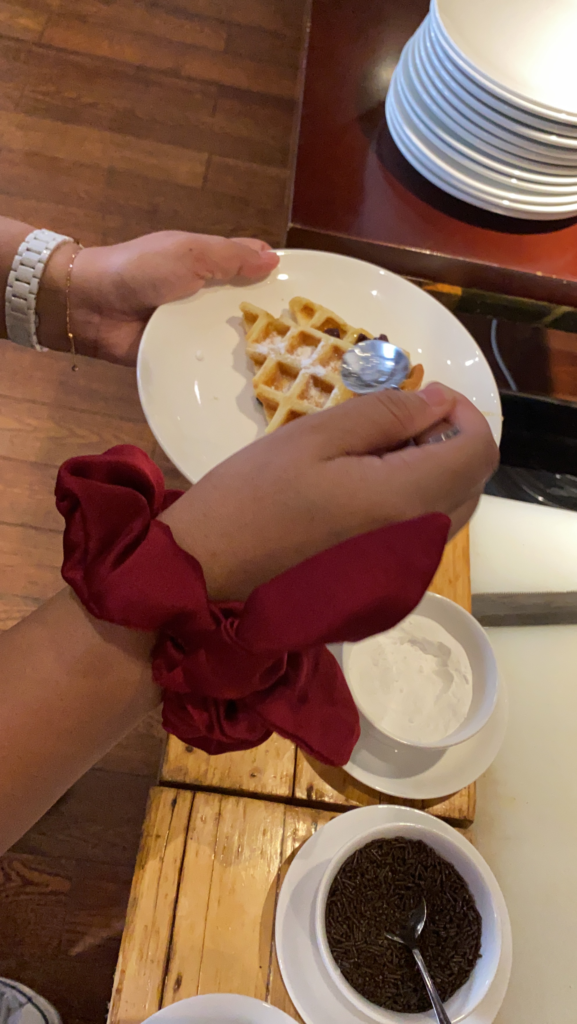 “Ah nikmatnya brunch kali ini.”, sekali lagi Cahaya tampak merapikan posisi duduknya, perutnya terasa agak begah tapi masih ada ruangan lain untuk hidangan penutup. Seorang rekan menawarkan gu ling gao yang disajikan dengan campuran madu, yang rasanya agak mirip es cincau tapi di ujung lidah menyisakan rasa pahit tipis bagai jamu.