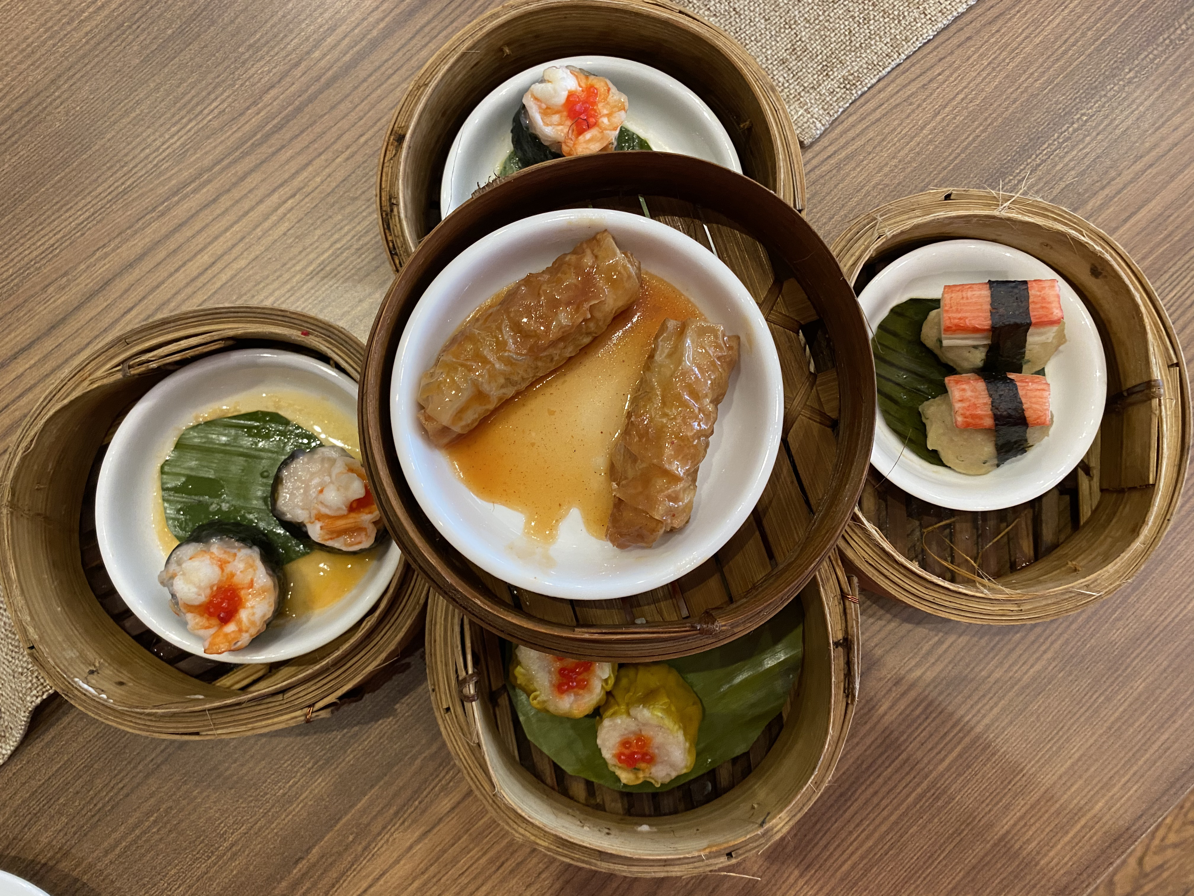 Jenis dim sum yang tersaji di sana yakni dimsum goreng seperti pangsit udang, carrot cake, money bag isi ayam wangi, udang kulit tahu, roti udang, udang tepung roti, ayam keju, cakwe, yam cake, ayam pandang, chicken roll, onde-onde, dan menu lainnya. Sedangkan Untuk menu steam atau dikukus, tersedia seafood nori, kaki ayam, siomay nori, steam ayam bungkus, seaweed roll, siomay, feycei dumpling, otak-otak, bakso ikan, ayam kulit tahu asam manis, udang, cabe yong tahu, crabstick dumpling, chiongfan, hakau, chasio pao, dan lou mai gai.