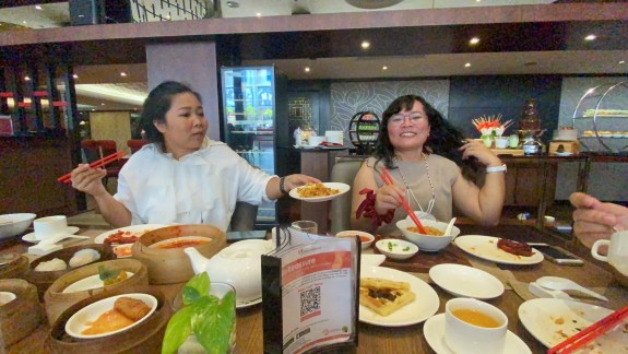 Menikmati dim sum memang harus sesantai itu, dalam porsi dan ukuran kecil dengan varian. Bayangkan kalau porsinya besar, ada 35 jenis varian dim sum yang harus dikudap.