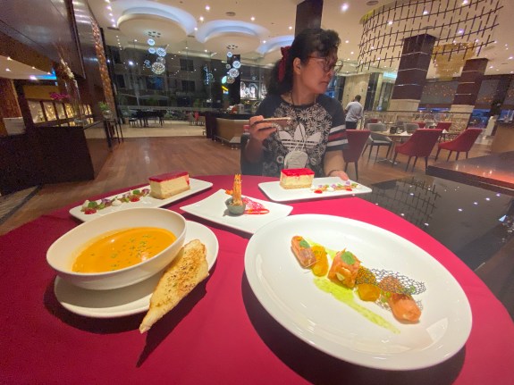 Buat yang kepo bisa mengulik deretan nama makanan di dalam menu seperti : Shrimp Tratlet, Smoked Salmon & Goat Cheese Roulade, Italian Tomato Cream Soup, Pan Seared Chicken Breast, Grilled Fillet Mignon, Pan Seared Salmon dan Chesse Cake.