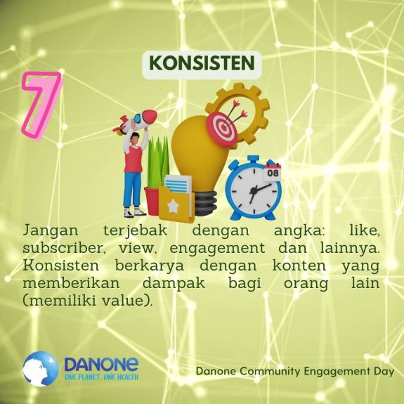 Arif Mujahidin – Corporate Communications Director Danone Indonesia menjelaskan “Danone Indonesia yang memiliki komitmen ganda dalam menjalankan bisnis yang sejalan dengan kemajuan lingkungan dan sosial, memiliki fokus yang sejalan dengan implementasi target Sustainable Development Goals (SDGs) dan target pemerintah dalam aspek keberlanjutan. Untuk itu kami berupaya untuk mengedukasi masyarakat melalui pesan dan konten yang membahas mengenai keberlanjutan lingkungan dan sosial melalui para konten kreator. Di era digital saat ini, konten kreator sangatlah penting untuk menjangkau publik secara luas melalui distribusi konten yang menarik, kreatif dan relevan dengan audiens.