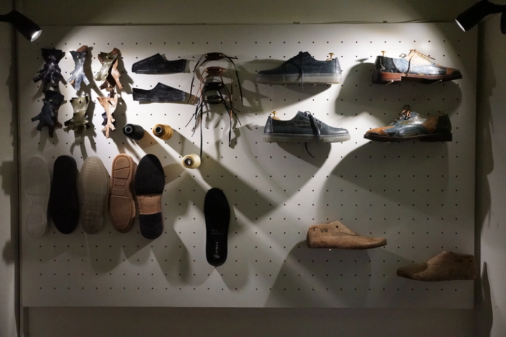 Tekstur sepatu kulit itu sepintas mirip kulit hewan reptil yang biasa dibandrol jutaan bahkan puluhan juta rupiah, jika sudah menjadi sepasang sepatu. Namun kini ia hadir dengan estetika yang tak kalah tapi tetap terjangkau di kantong kebanyakan orang.