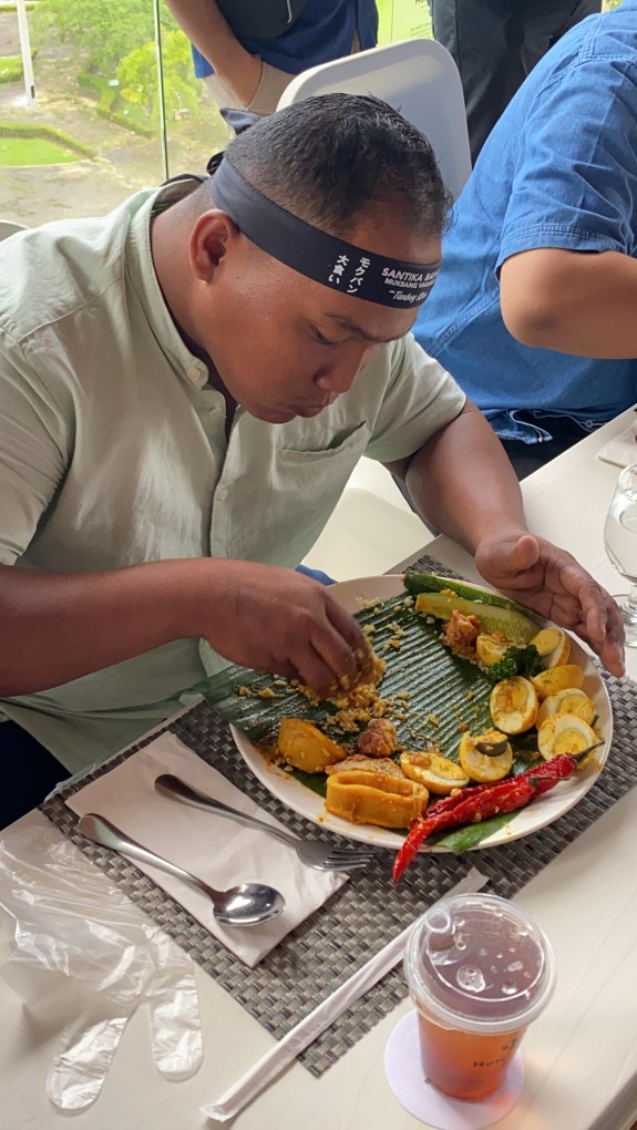 Siapa yang tak tergoda melihat nasi kandar menggunung lengkap dengan lauk pendampin di atas pinggan besar. Aroamya jelas menggugah selera 36 peserta mukbang. Beberapa wajah terlihat tak sabar, sepertinya mereka sudah tak makan beberapa hari untuk menghadapi hari ini. 🙂
