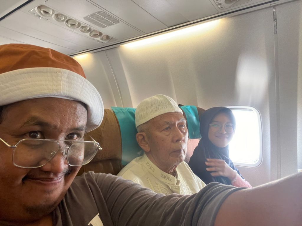 Perjalanan panjang terakhir panjang bersama bapak mungkin puluhan tahun lalu . Sejak pensiun bapak lebih memilih menjaga rumah jika kami serumah berencana pergi jalan jalan. Dengan pertimbangan tak ingin melewatkan waktu sholat, beliau pilih menjaga rumah. Salah satu yang membuat bapak setuju penerbangan ini karena tak akan melewatkan waktu sholat.