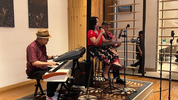 Usai paduan suara berdendang tembang natal, lanjut sajian live musik di Goji Kitchen & Bar dekat gerai makanan tradisional. Jujurly bikin aku semangat bolak balik ke gerai ambil makanan. Bisa menggoyangkan kepala ke kanan dan ke kiri tapi tidak mengganggu menikmati sajian berselera.