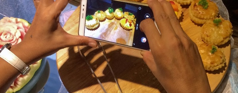 Bukannya pergi menjauh meninggalkan meja , tamu lain malah ikutan asik membidik. Lalu kapan makannya?