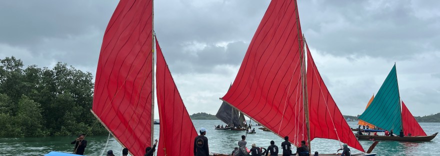Ini hanya permaianan , membentang layar lalu beradu kencang itu memacu adrenalin. Meski hujan sempat mengguyur 48 jam penuh, layar warna warna akhirnya terkembang tanggal 12 Januari 2025