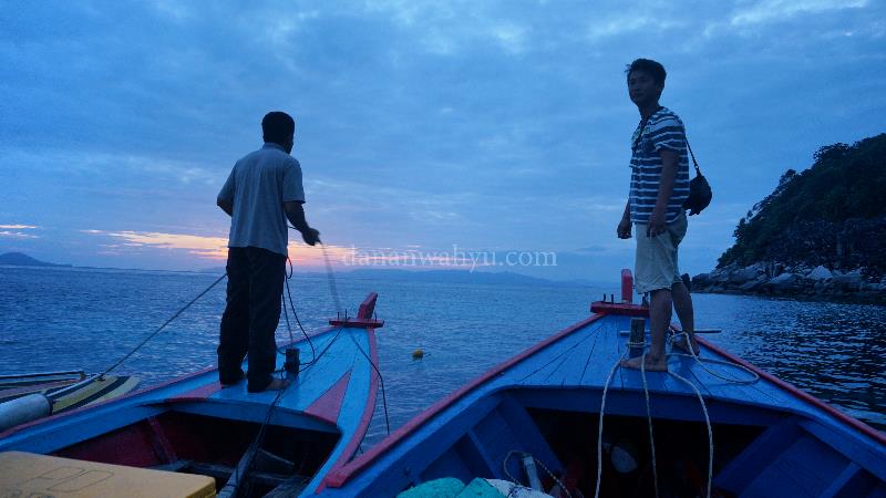 17 Agustus 2015 – Senja baru saja menaungi Tarempa ketika sauh diturunkan. Dalam rona temaram jingga kembali berlayar ke Durai melalui pelabuhan pemda. Raut ragu sang nakoda seolah tertutup kelamnya malam. Ia memilih diam takut mengecewakan kami yang terlanjur bersemangat.