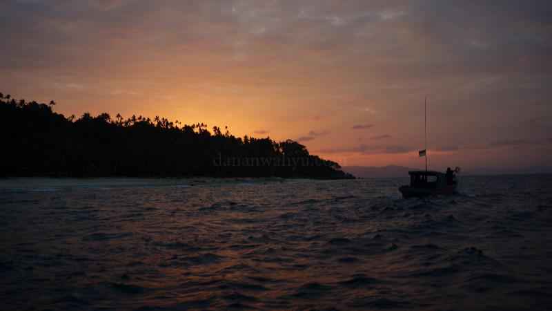 Senandung burung dari pulau Durai terdengar jelas, membahagiakan insan memulai hari. Tiga kapal nelayan mengiringi kami menuju lautan teduh. Lambain tangan nelayan sekaligus bermakna doa, melepas kami ke lautan luas. Durai masih menggoda dengan rona jingganya, tapi kami memilih menjauhinya karena gelombang di sana tak bersahabat.