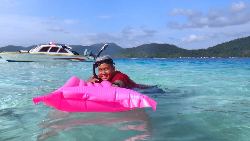 Segudang rencana pun terujar tanpa pernah sadar ada bahaya besar menghadang. Dalam hitungan menit speed boat terguncang hebat membentur gelombang. Saya masih bisa tersenyum lebar, seolah laut sedang menyapa dan ingin bermain.